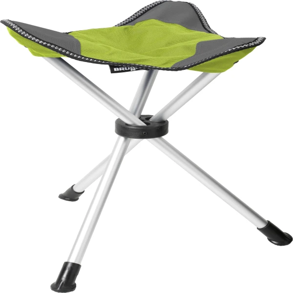 Sgabello treppiede pieghevole con struttura in alluminio.